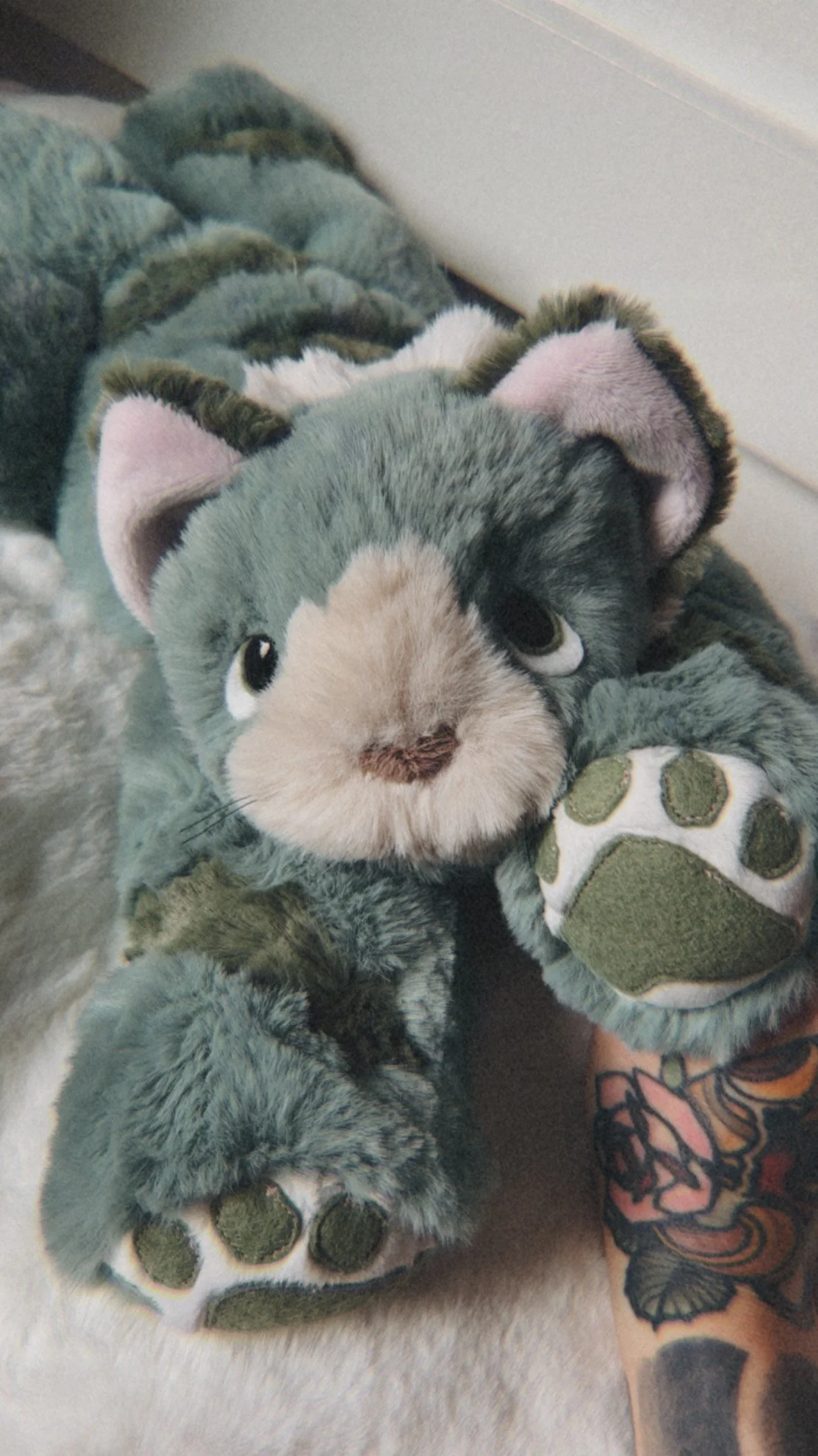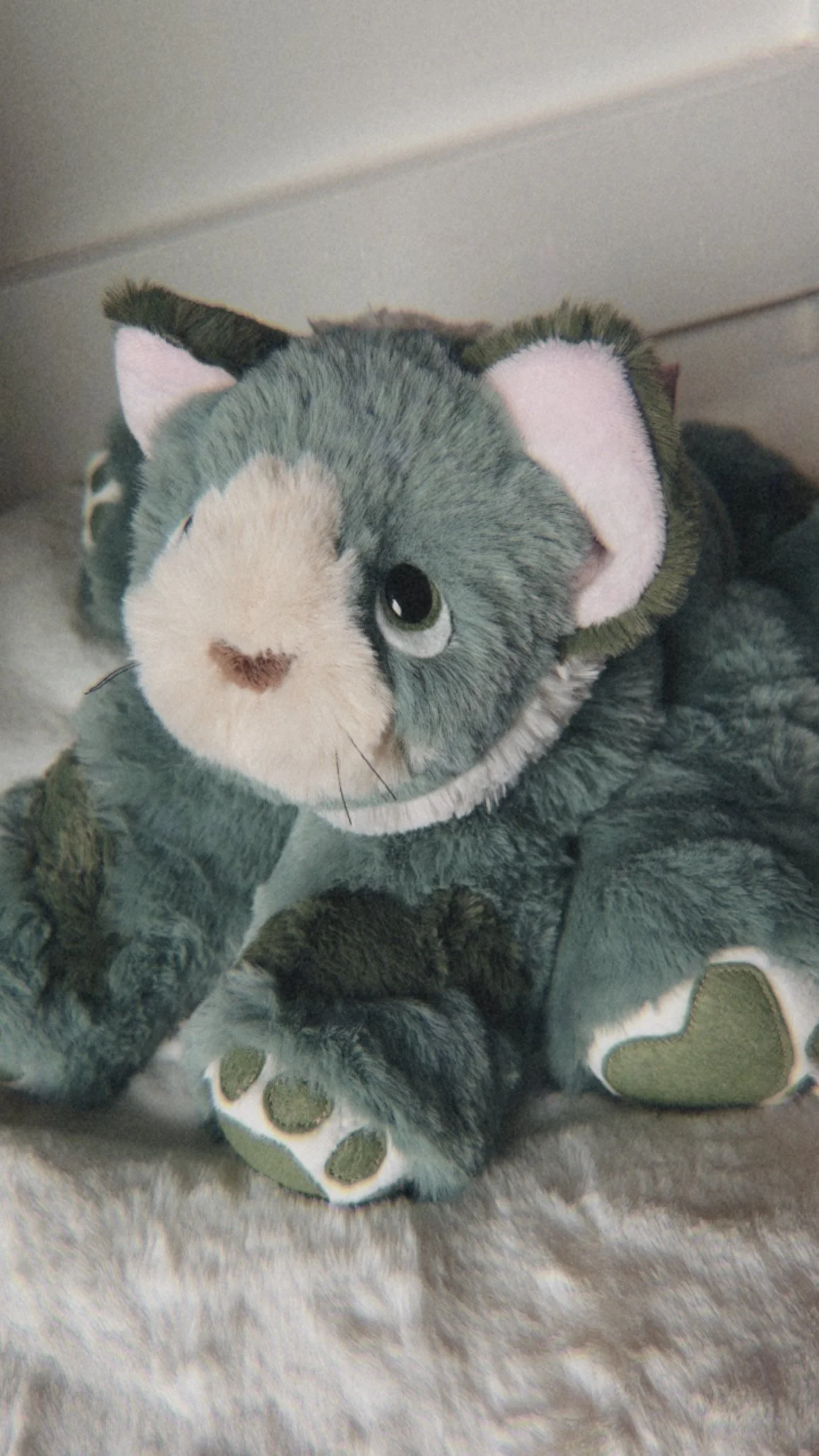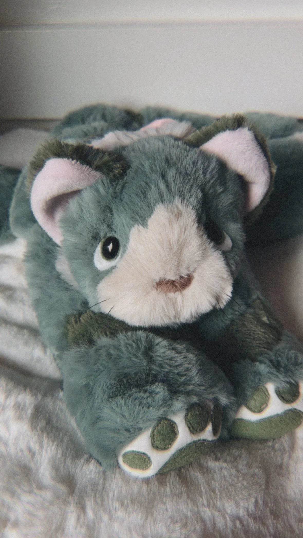 Hand crafted with four wool felt paw prints, machine sewn on cuddle fabric.